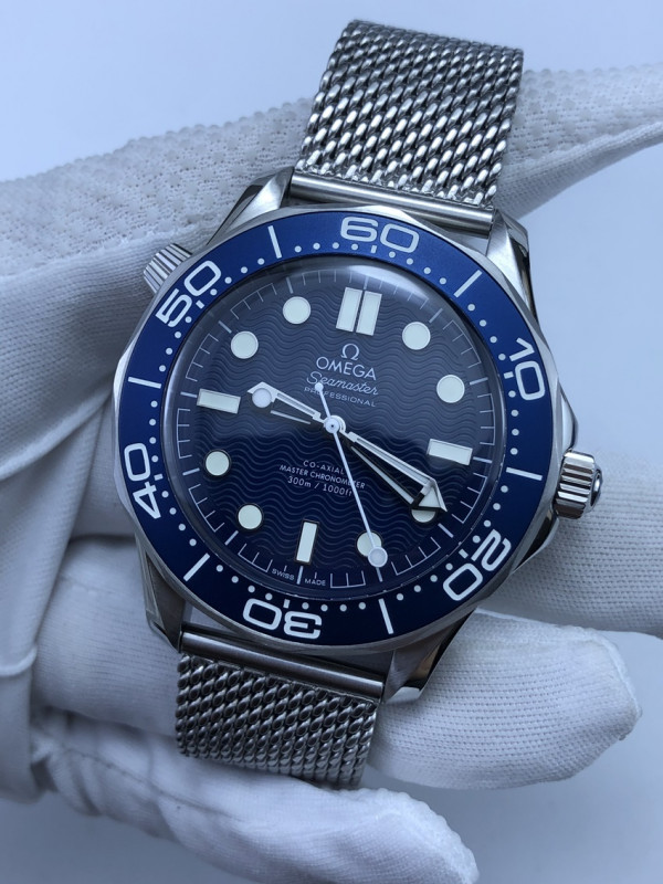 (준비완료/특급배송/예상수령5일)NO.71/VS공장 오메가 씨마스터 다이버300 제임스본드 60주년 블루물결텍스쳐다이얼 메쉬스트랩
