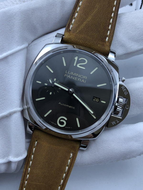(준비완료/특급배송/예상수령7일)NO.453/VS공장 파네라이 PAM904 루미노르 두에 그레이 다이얼 브라운 아소 스트랩